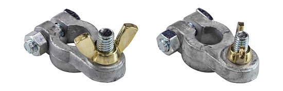 Комплект аккумуляторных клемм с винтовыми зажимами и гайками-барашками.