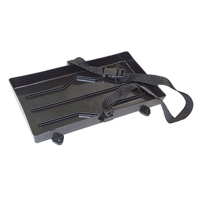 Лоток изготовлен из химически стойкой пластмассы и предназначен для хранения и эксплуатации аккумуляторной батареи.