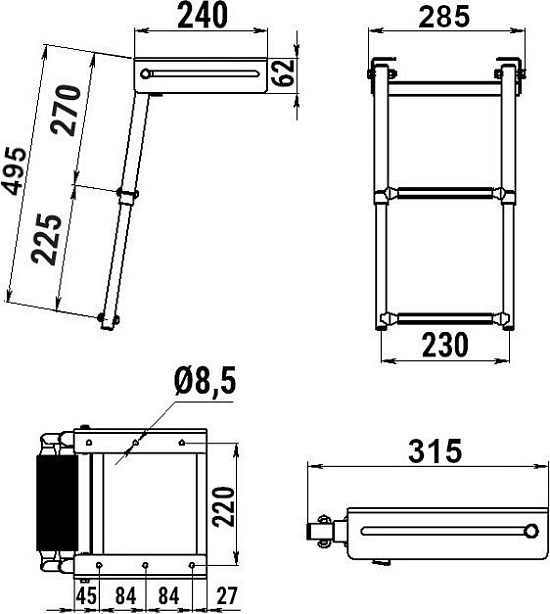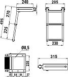 Трап выдвижной телескопический предназначен для установки в кормовой части плавсредства под горизонтальную площадку.