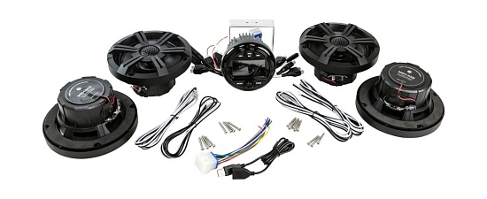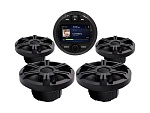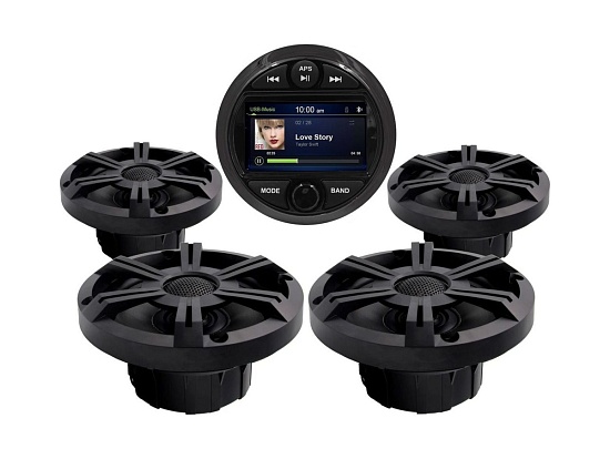 Комплект морской акустики состоит из головного устройства MRH301 с цветным дисплеем 3” и комплектом врезных динамиков MRH-65.