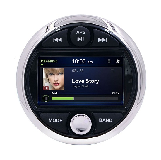 Эта цифровая мультимедийная аудиосистема с цветным дисплеем 3”, созданная специально для использования в морской среде, — отличный выбор для установки на катере, яхте или квадроцикле. Влагозащищённое исполнение IPX6 позволит не расставаться с любимой музыкой всюду, где бы вы ни находились.