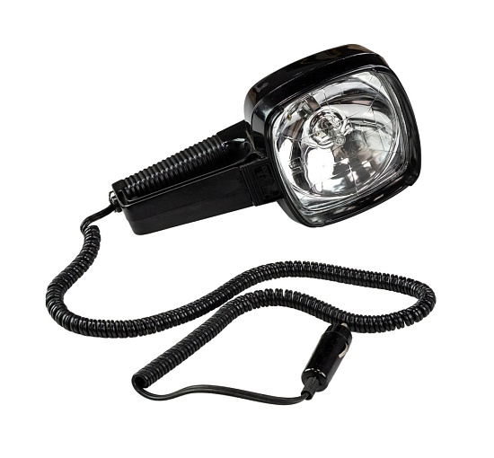 Фароискатель переносной в пластмассовом корпусе со стеклянной линзой и гибким кабелем питания 3,6 м со штекером для гнезда прикуривателя.
