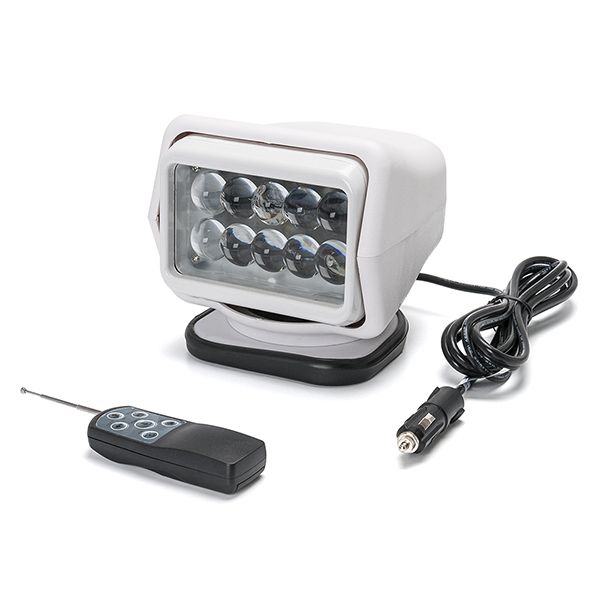Белый светодиодный фароискатель 50 ватт с линзами 4D (диоды фирмы Cree США). Работает на дистанционном управлении 360 градусов вокруг своей оси, а так же вверх и вниз. Компактный корпус монтируется легко на встроенном магните на любой металл или любую поверхность шурупами.