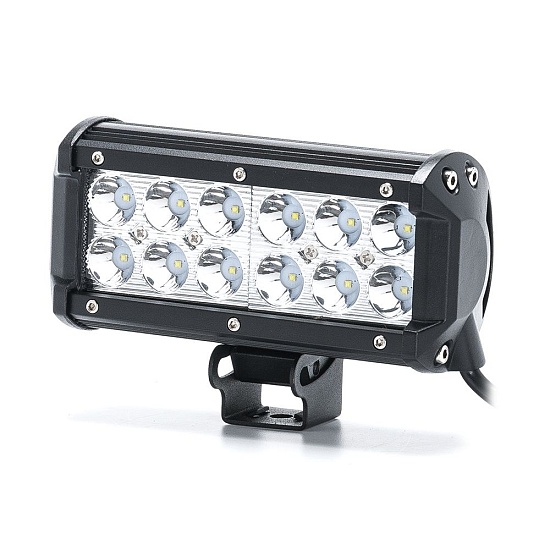 Литой алюминиевый корпус и ударопрочные линзы светодиодной балки DC-36W spot дальний свет могут выдержать даже самые суровые условия. Установлено 12 диодов по 3W Cree (США). Современный класс пыле-влагозащиты IP67. Рабочее напряжение 12-24V дает возможность установить фару как на легковой автомобиль, так и на спецтехнику.