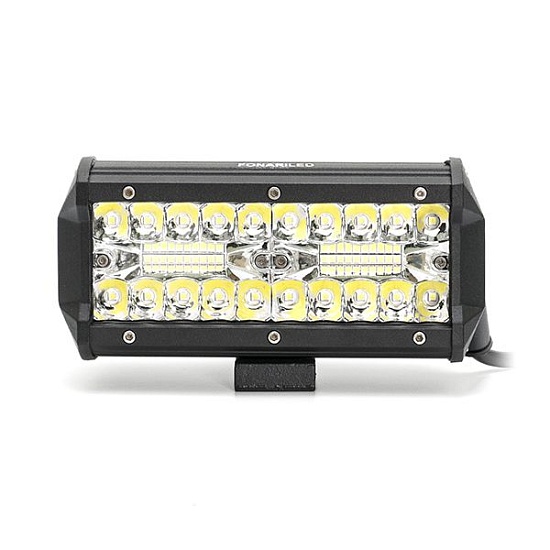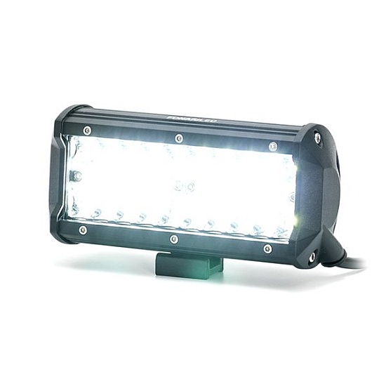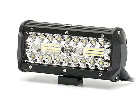 Двухрядная балка имеет 40 диодов легендарной фирмы Philips по 3W, что дает в сумме 120 ватт мощности. Предусмотрена гарантия 3 месяца, и 30000 часов непрерывного свечения. Невероятно мощная модель имеет довольно компактные размеры, выполнена в черном матовом цвете. Противоударный корпус из литого алюминия позволяют балке работать при любых погодных условиях.