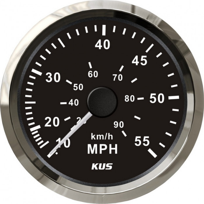 Спидометр манометрический 0-55 MPH, черный циферблат, нержавеющий ободок, д. 85 мм. (KY18002)