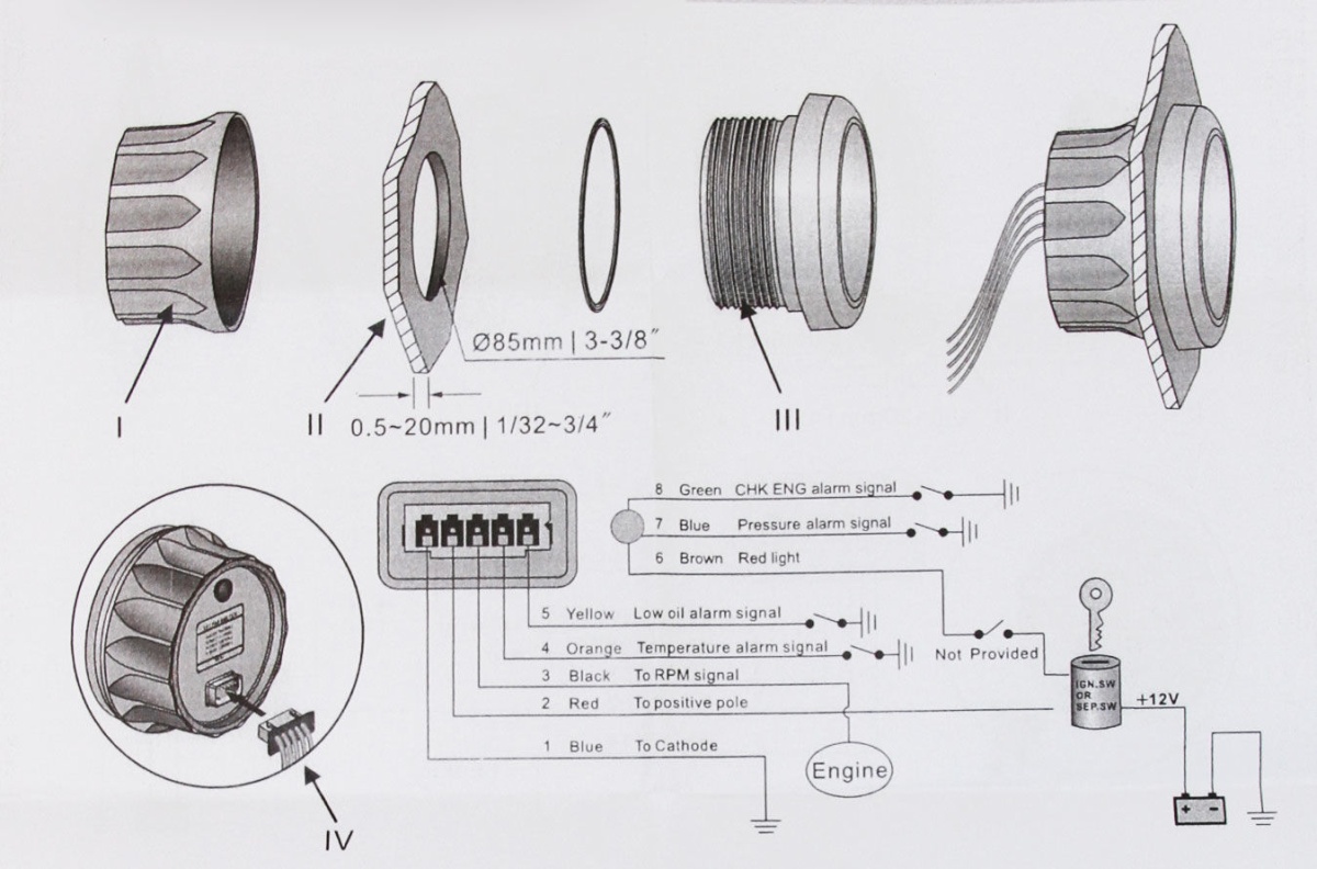 Сигнал на тахометр поступает в виде переменного тока с генераторной катушки двигателя. При отсутствии возможности подключения к генератору переменного тока потребуется установка отдельного сенсора.