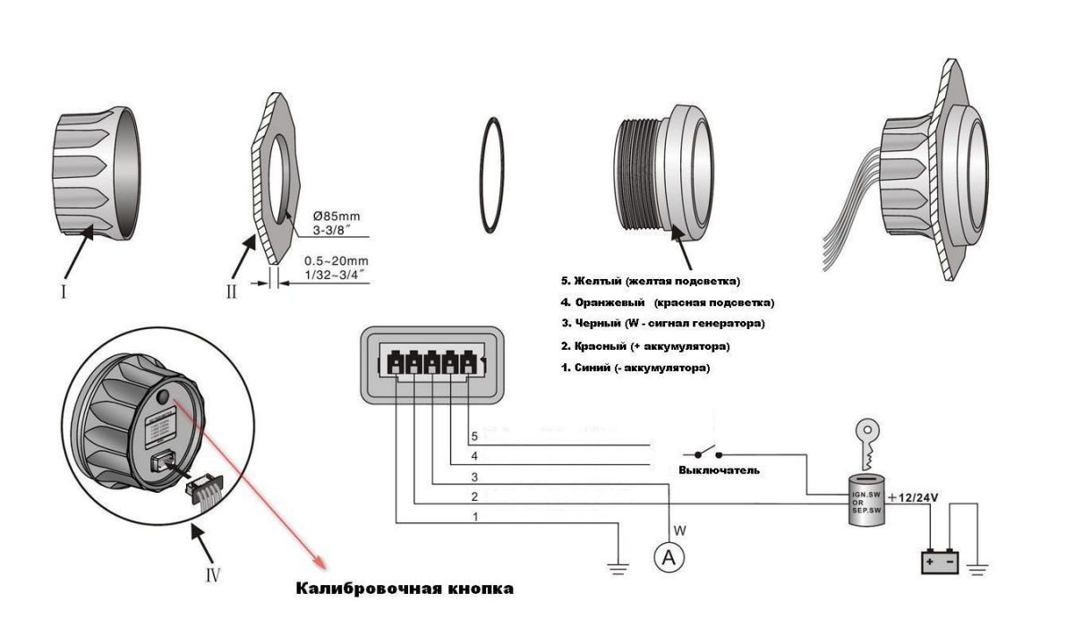 Сигнал на тахометр поступает в виде переменного тока с генераторной катушки двигателя. При отсутствии возможности подключения к генератору переменного тока потребуется установка отдельного сенсора.