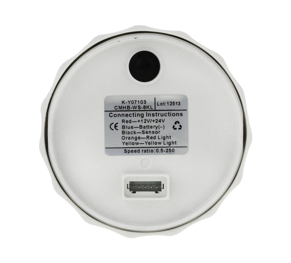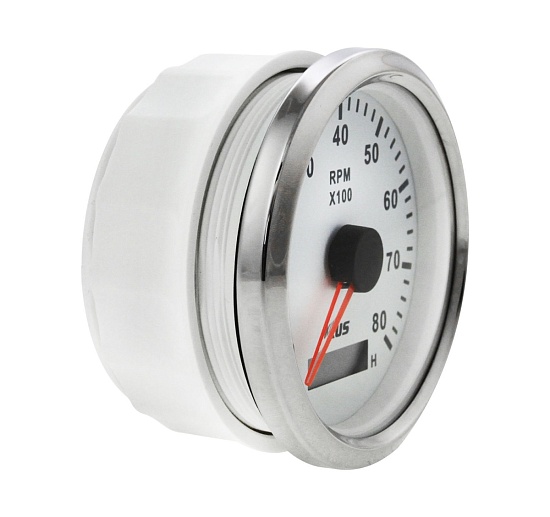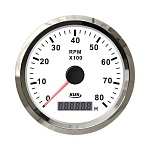 Тахометр 0-8000 об/мин со счетчиком моточасов делитель 0.5-250, белый циферблат, нерж. (KY07103)