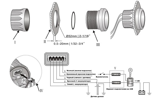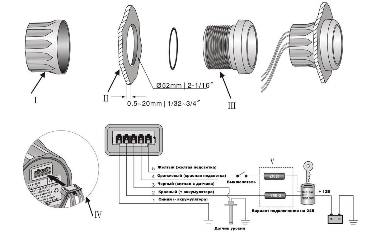 Следует обратить внимание, что указатель уровня жидкости подбирается по сопротивлению датчика, установленного в бак.