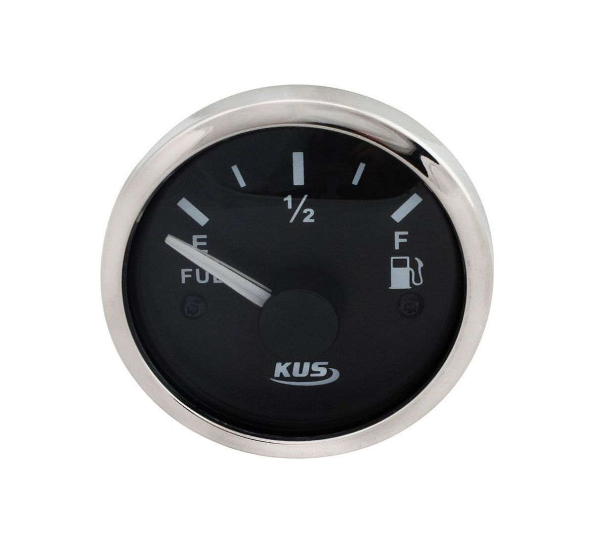 Указатель уровня топлива черный с нержавеющим ободком. Данный прибор предназначен для измерения уровня топлива в топливных баках. Используется в составе приборной панели судна.