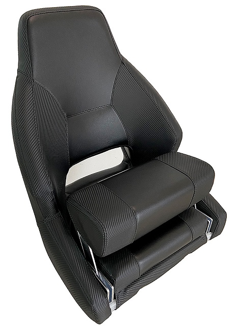 Кресло с болстером «Racer carbone», чёрный — комфортное и стильное сиденье для катеров, моторных лодок и RIB, рассчитанное на активное катание и высокие скорости. Эргономичная форма, выраженная боковая поддержка и откидной болстер обеспечивают удобство как в сидячем, так и в полустоячем положении. Чёрная обивка с «карбоновой» фактурой добавляет современный спортивный вид кокпиту.