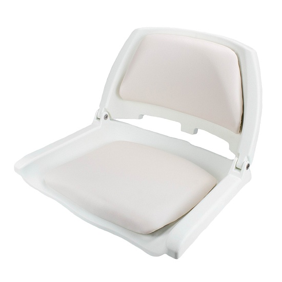 Кресло пластиковое с мягкими накладками и складывающейся спинкой.