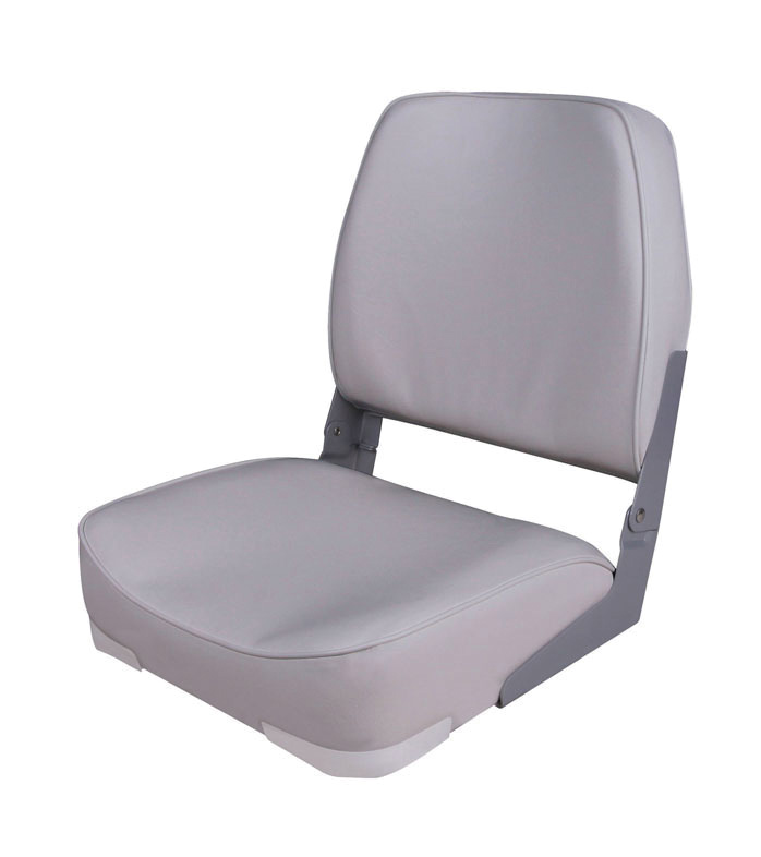 Сидение мягкое, складное, серого цвета (низкая спинка). Имеет стандартные стальные шарниры.