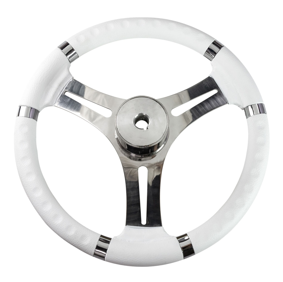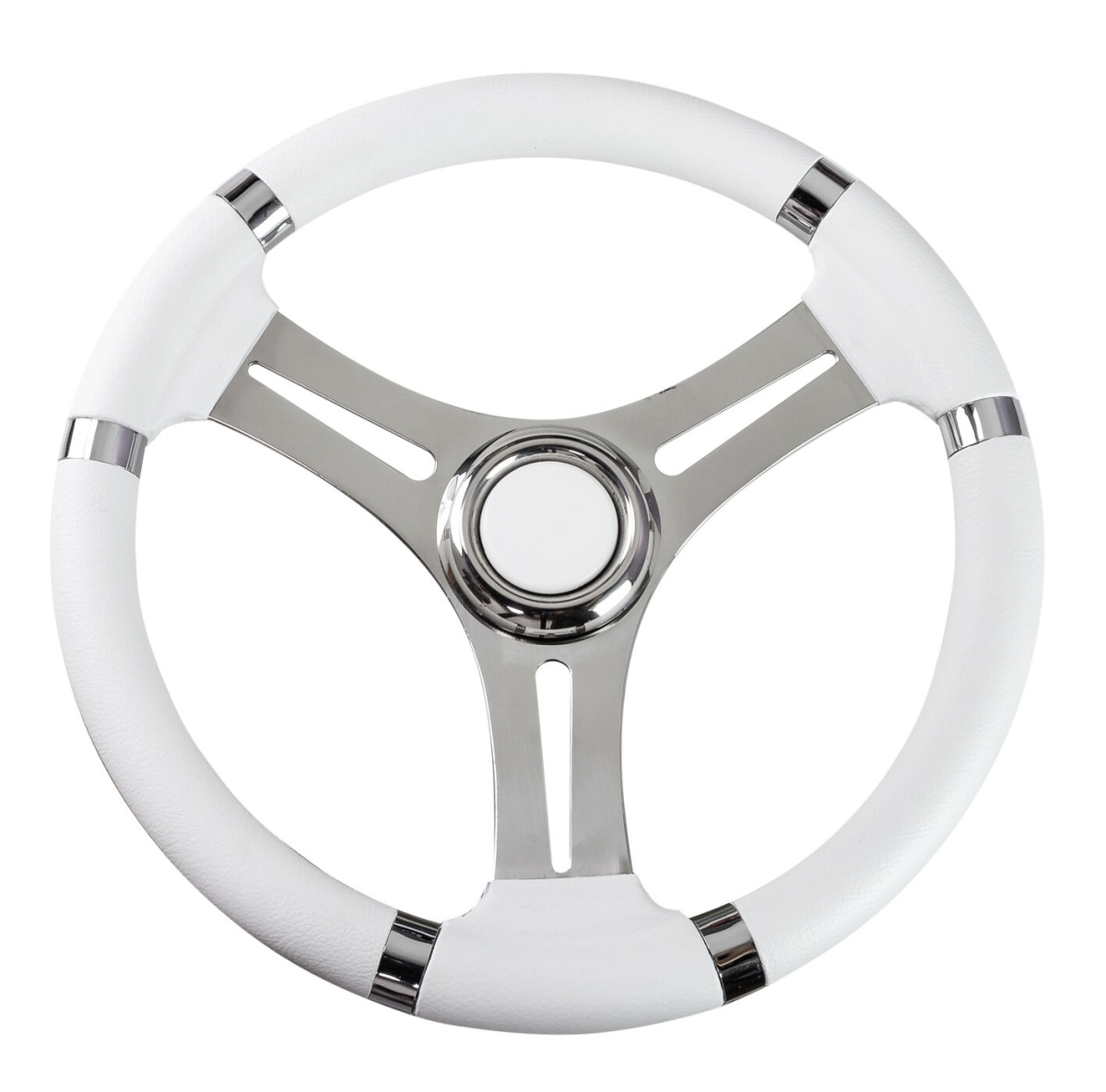 Рулевое колесо Osculati 350 мм в белом цвете — классическое решение для прогулочных и рыболовных катеров, а также для лодок с консолью, где важны комфорт управления и светлый, «морской» стиль кокпита. Увеличенный диаметр 350 мм даёт более плавный и точный контроль курса.