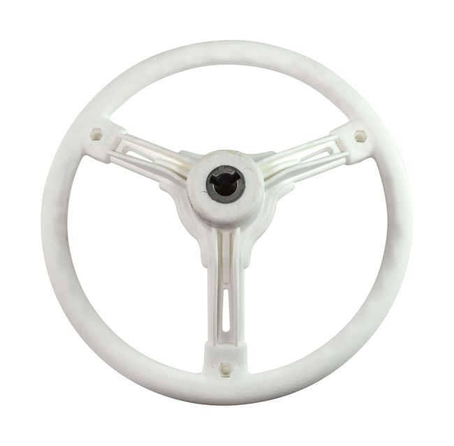 Рулевое колесо Riviera, белый обод и спицы, диаметр 350 мм — это элегантный руль для моторных лодок и катеров, созданный в «классическом яхтенном» стиле. Белый обод и белые спицы визуально освежают кокпит, красиво сочетаются с светлыми консолями, гелкоутом и мягкой мебелью, а увеличенный диаметр 350 мм обеспечивает комфортное, «неторопливое» управление.
