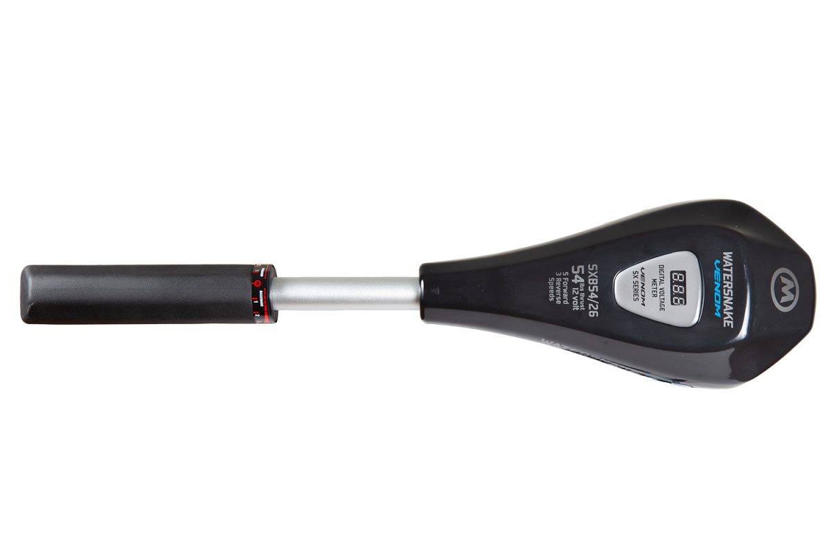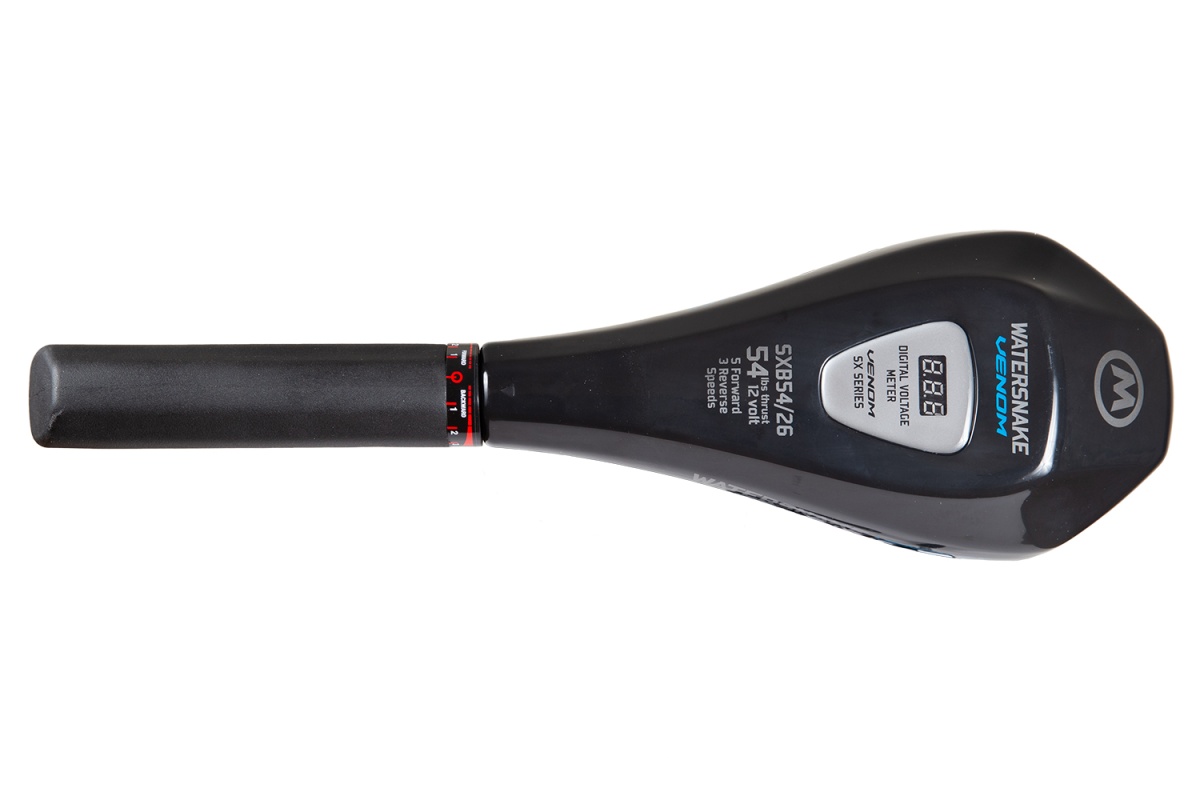 Румпель управления телескопический (13-28 см). Цифровой вольтметр на верхней панели позволяет контролировать уровень заряда батареи. Мотор имеет пять скоростей для движения вперёд и три для движения назад. Электрические провода оснащены концевыми клеммами под винт.