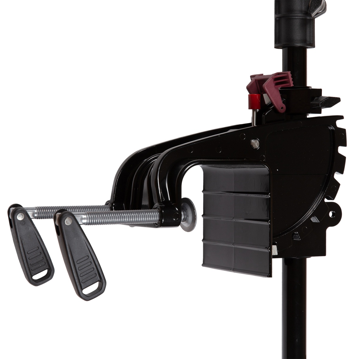 Мощный лодочный электромотор тягой 54 фунта для надувной лодки ПВХ длиной до 5.0 метров. Оснащён удобной струбциной для крепления на транец, конструкция которой позволяет регулировать угол наклона дейдвуда. Система крепления дейдвуда с фиксатором позволяет выбрать необходимую величину заглубления винта в зависимости от высоты транца судна и условий использования. Мотор практически бесшумен во время движения надувной лодки.