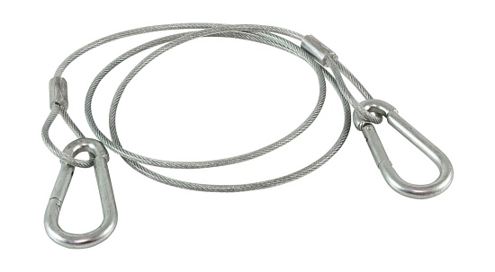 Стальной тросик заключен в полимерную оболочку, комплектуется двумя карабинами из оцинкованной стали.